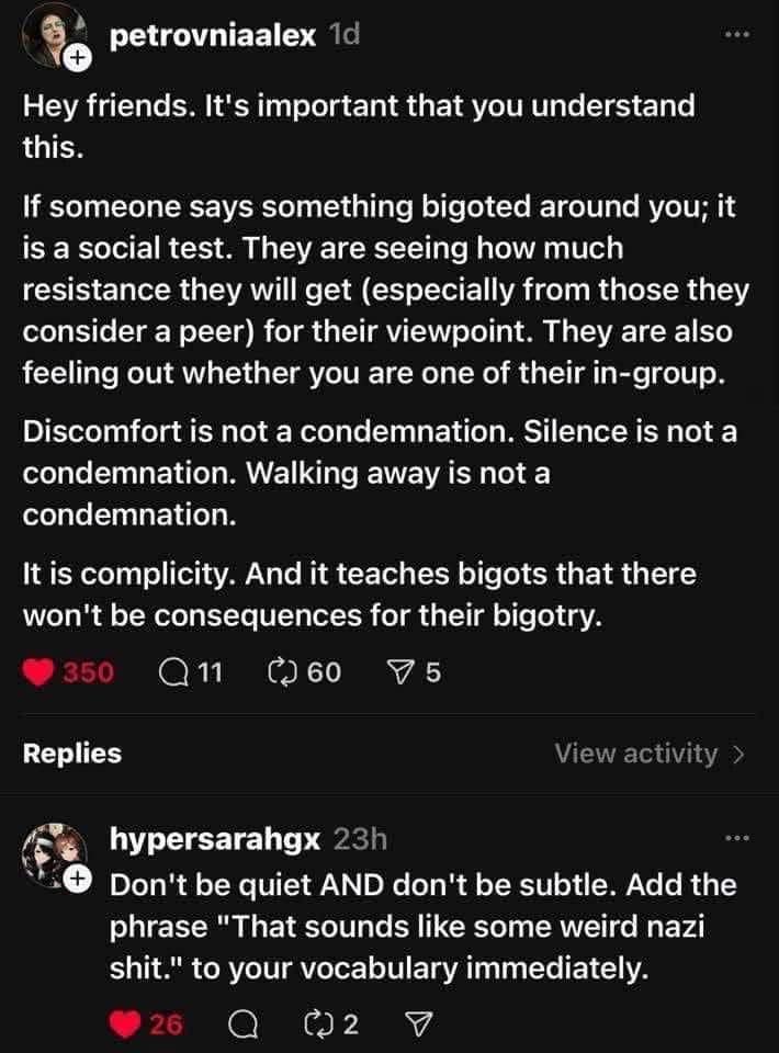 I’m having a hard time dealing with that felon’s inauguration. He’s enacting measures lifted directly from Project 2025, and the next four years (at least) are going to be a nightmare. Bigots were already emboldened by his success since 2015. They are often bullies, too. The following is a useful tactic. (Click on the image to enlarge it.)